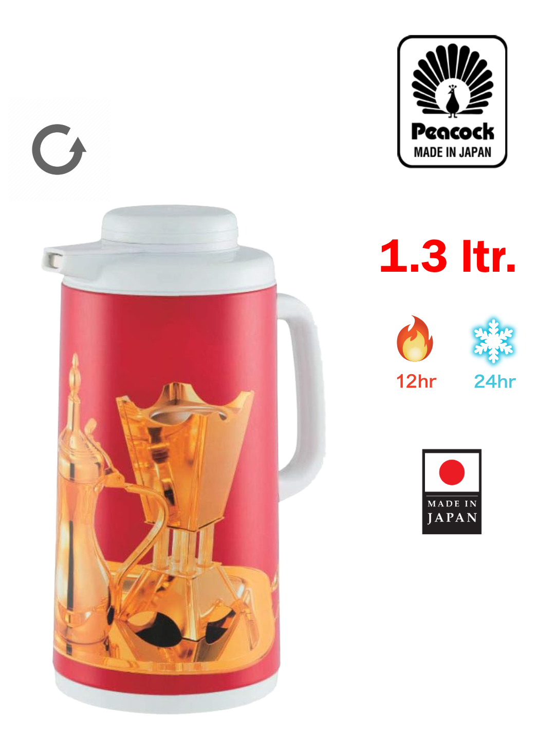 ترمس الطاووس (بيكوك) نموذج العراقة – والذي يلبي كافة احتياجاتك في تناول المشروبات والسوائل الباردة والساخنة حيث يحفظ الحرارة لمدة تدوم 12 ساعة للساخن و24 ساعة للبارد.